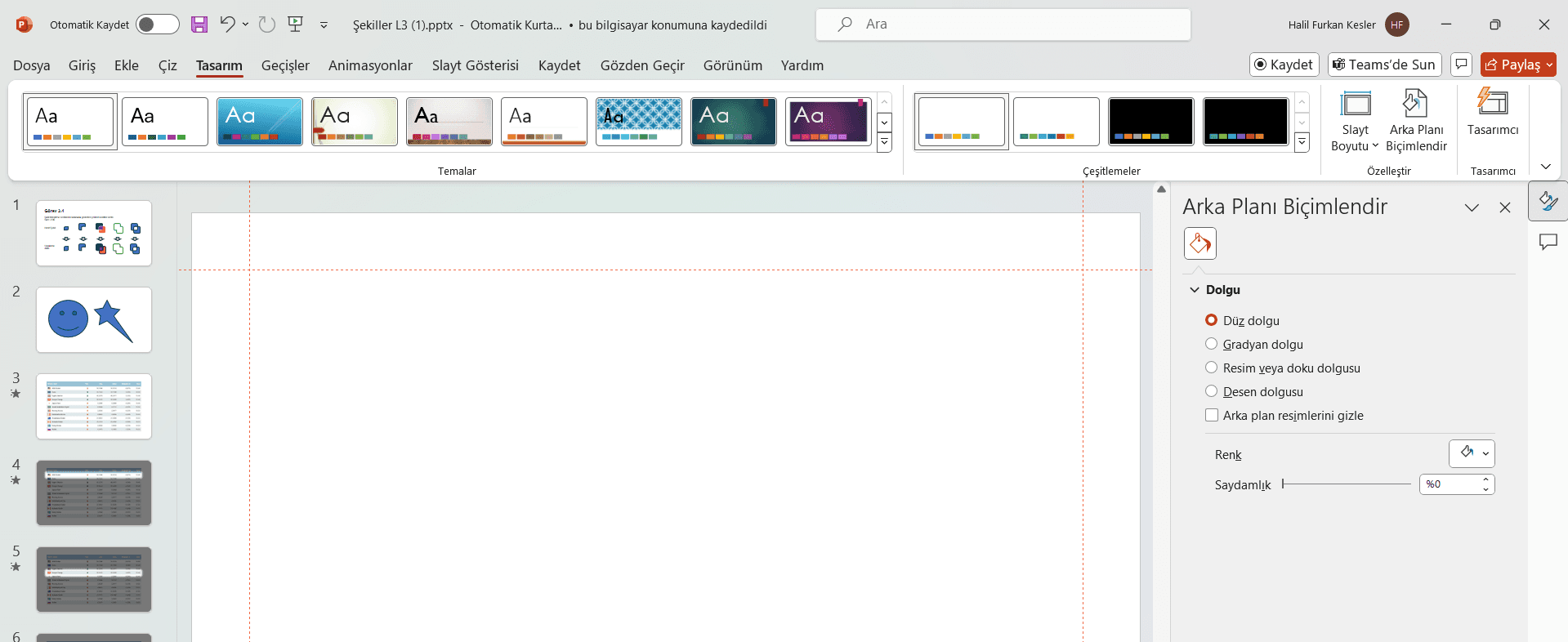 PowerPoint’te özel bir arka plan eklemek için “Tasarım” (Design) sekmesine gidin.