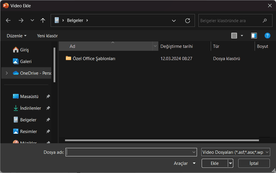 Bilgisayarınızdan bir video eklemek için, video dosyasını seçmeniz yeterlidir. PowerPoint, genellikle MP4, AVI ve WMV formatlarındaki videoları destekler. Video dosyasını seçtikten sonra, sunumunuza eklemek için ‘Ekle’ düğmesine tıklayın.